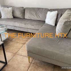 Brand New Sectional Gray Velvet With Golden Legs Same Day Delivery 🚚 Finance Available $599Houston, TX
