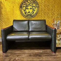 La-Z-Boy - Wood Finish Black Top Grain Leather Loveseat$485Houston, TX