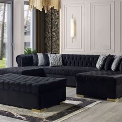 🔥Nova🔥 Lauren Black Velvet Double Chaise Sectional Delivery 🚚⚡️🚛$2,200Houston, TX