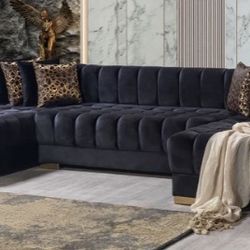 New/ Black And Blue Velvet Double Chaise Sectional, Seccional, Couch $2,089Spring, TX