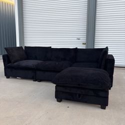 Black Fluffy Corduroy Sectional Couch With Pop Up Bed & Storage Delivery Available 🚚$1,280Houston, TX