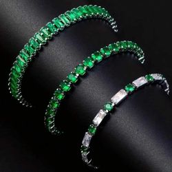 3-Pcs Emerald Green 14K White Gold-Plated Baguette & Round Cut Cubic Zirconia Bracelets$20Houston, TX