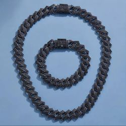 2-Pcs Men Women Fully Iced Rhodium Plated Black Cubic Zirconia 20 Inches Necklace & Bracelet Set $28Houston, TX