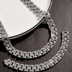 2Pc Men ICED Watch Band Link Baguette Chain 14K Gold Plated Cubic Zirconia Necklace & Bracelet Set$24Houston, TX