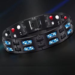 Stylish & Durable 2-Tone Titanium Double Row Black Blue Hued Anti-Static Magnetic Bracelet $18Houston, TX