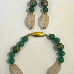 Vtg Aventurine, Cloisonne, & Rose Quartz Bracelet & Earrings $70Houston, TX