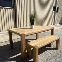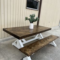 Hand built Farm House Dining Table Solid Wood Restoration Hardware Insp Set Modern Rustic Bench Trestle Custom Breakfast Mesa Comedor Extendable Leaf $380Houston, TX