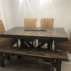 Custom Built Dining Table Solid wood Farmhouse Set Modern Rustic Bench Country Oval Round Counter Breakfast Height Farm house $123Houston, TX