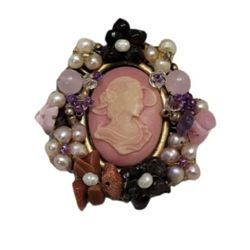 Vtg Retro Style Pink Cameo Brooch Metal Filigree Carved Crystal Collection New$12Houston, TX