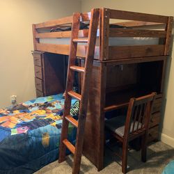 Brown Wooden Twin Bunk Bed Set With Shelf, Desk, Chair and Laddar$200Conroe, TX