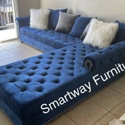 Sectional Oversized Blue Velvet W Pillows $1,199Houston, TX