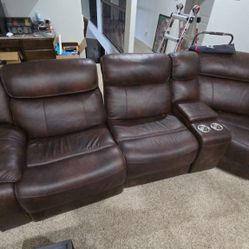 Power Reclining Sectional Sofa Two Tone Brown Leather With Bluetooth Speakers $1,349Houston, TX