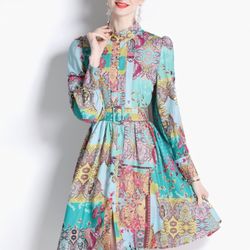 Runway Fashion Floral Mock Neck Lantern Sleeves Belted Ruffled Party Maxi Dress$40Houston, TX