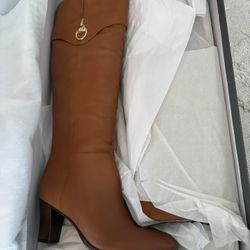 Jessica Simpson Cognac Brown Leather & Suede Slouch Heeled Boots-NEW-Authentic Size 7 -77064 Area code $45Houston, TX
