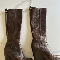 Women's Brown Frye Leather HIGH Heeled Boots Size 6 1/2B Used $79Spring, TX