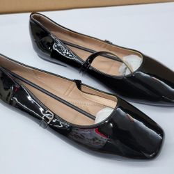 Annas Shoes Black Faux Leather Ballet/Mary Jane Low-Heels Stylish Comfortable Flat with a Square Toe Cute Dress Wedding Shoes Size 8.5/9