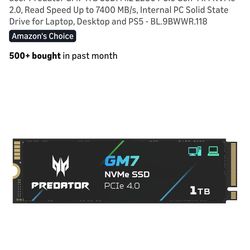 acer Predator GM7 1TB SSD: M.2 2280 PCIe Gen 4 x4 NVMe 2.0, Read Speed Up to 7400 MB/s, Internal PC Solid State Drive for Laptop, Desktop and PS5 - BL$150Bellaire, TX
