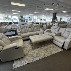 Cream Leather Power Reclining Set With Speakers,led,usb Charger, Cup Holder š„µsame Day Delivery š $49 Down$3,100Houston, TX