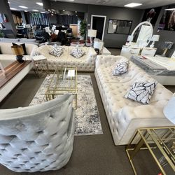 Comfy Modern Ivory Cream And Gold Sofa,loveseat & Accent Chair 🪑 Not Credit Needed 🥳Same Day Delivery 🚚 $49 Down$49Houston, TX