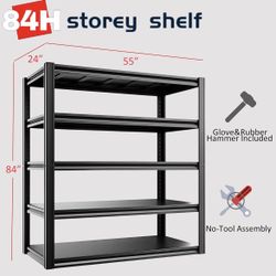 5-Tier 84" H x 55" W x 24" D Garage Shelving 3000LBS Storage Shelves Heavy Duty Metal Shelf Unit$180Houston, TX