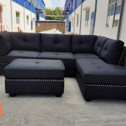 Brand New/ Sienna Black Linen Sectional With Ottoman/ Delivery Available, Seccional/ Couch/ Financing Options $989Katy, TX