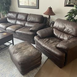 New Ginger Leather Sectional And Ottoman $750Houston, TX
