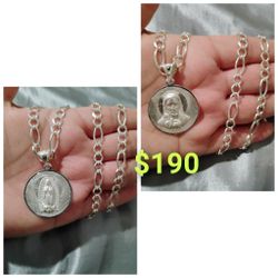 925 Sterling Silver Chain With The Pendant/Cadena Con Medalla Doble Jesus, Virgen De Plata 925$190Houston, TX
