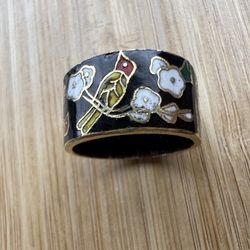 Vintage Cloisonné Enamel Ring Size 8 — 1970s-80s Rare Bird Flower Black Gold Wide Band$150Houston, TX