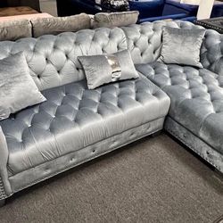 (NEW IN BOX)-Glam GreyVelvet Sectional Finance Available $54 down pmt only$699Houston, TX
