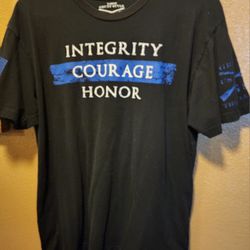 Grunt Style Black Tee with Blue Stripe - INTEGRITY COURAGE HONOR Size Large $20Houston, TX