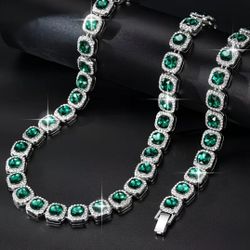 2-Pcs Iced Out 14K White Gold-Plated Green Cubic Zirconia Tennis 24" Necklace & Bracelet Set $26Houston, TX