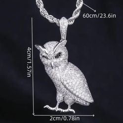Iced Out 14K White Gold Plated Cubic Zirconia Owl Pendant Necklace $15Houston, TX