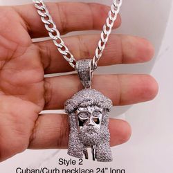 925 Sterling Silver necklace and pendant holy face with white cubic zirconia pave ❤️ Pendant 49mm long ❤️ Necklace 6mm wide and 24” long ❤️ Cuban cu$385Houston, TX