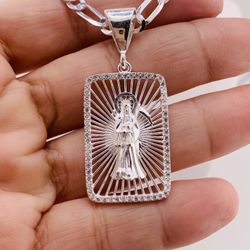 925 Sterling Silver Bracelet Figaro Link San judas - Pulsera De Hombre En Plata $329Houston, TX