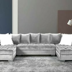 Double Chaise Sectional W Nail Heads Beige Color $1,299Houston, TX