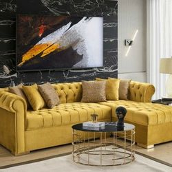 Audrey Velvet Yellow RAF Chaise Sectional