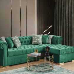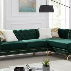 Audrey Velvet Green RAF Chaise Sectional