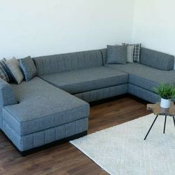 [HOT DEAL] Grayson Linen Gray Double Chaise Sectional & Couch Sofa $39Houston, TX
