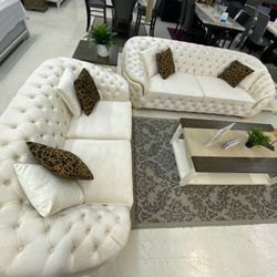 Cream Velvet And Gold Sofá, Loveseat Set 🙌🏽Not Credit Needed 🫡$49 Down 😅same Day Delivery 🚚 $2,749Houston, TX
