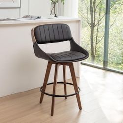 Set of 1 Modern Kitchen Bar Stool - 26.4 inch Walnut Counter Stool Swivel with Upholstered Seat, Cushion Back, Curved Arms, Versatile for Island/Kitch$120Katy, TX