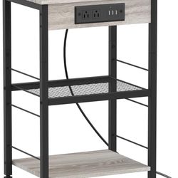 Nightstand with Charg Station End Table with USB Ports and Power Outlets Side Tables Bedroom with Storage Shelves Industrial End Table 3 Tier (Grey)$40Houston, TX