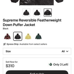 Reversible supreme nike puffer jacket Pale Yellow Medium$350Magnolia, TX