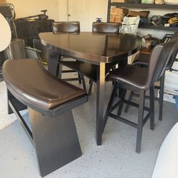 brown wood dining room set 6 chairs and table with extra leaf, real wood$380New Caney, TX