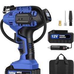 Cordless Tire Inflator Portable Air Compressor, 20V Rechargeable Battery Tire Pump w/ 12V DC Power Adapter, Digital Pressure Gauge, Auto Air Pump for $50Houston, TX