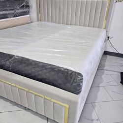 (NEW IN BOX) Queen, Full Size Beige With Gold Bed Frame 👑$259Houston, TX