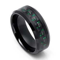 Men's 8mm Titanium Black Green Checkered Pattern Carbon Fiber Inlay Beveled Edges Engagement Wedding Band$14Houston, TX