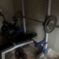 Complete Home Gym Set – Bench, Rack, Barbell, Plates & Weight Tree$200Magnolia, TX