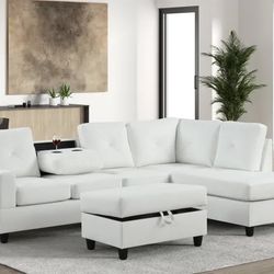NEW White Reversible Sectional W/ DROP DOWN TABLE WITH CUPHOLDERS & Ottoman -FINANCE AVAILABLE$599Houston, TX