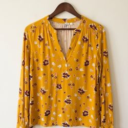 GAP Long-Sleeve Floral Henley Blouse - Size Small - Mustard Yellow$12Tyler, TX