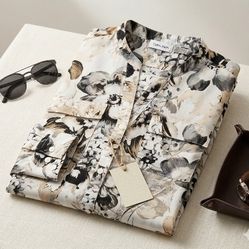 Calvin Klein Long-Sleeve Button-Up Shirt - Elegant Abstract Floral Pattern (Size Large)$15Tyler, TX
